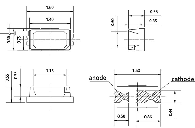 H1608AA2XXXXXX | A n | 1.8-2.6V | 270-600mcd | 600-615nm | 120° |