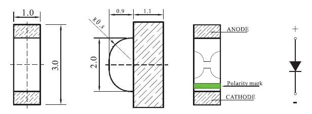 H3010BB1XXXXXX | B n | 2.8-3.6V | 50-300mcd | 450-470nm | 140° |